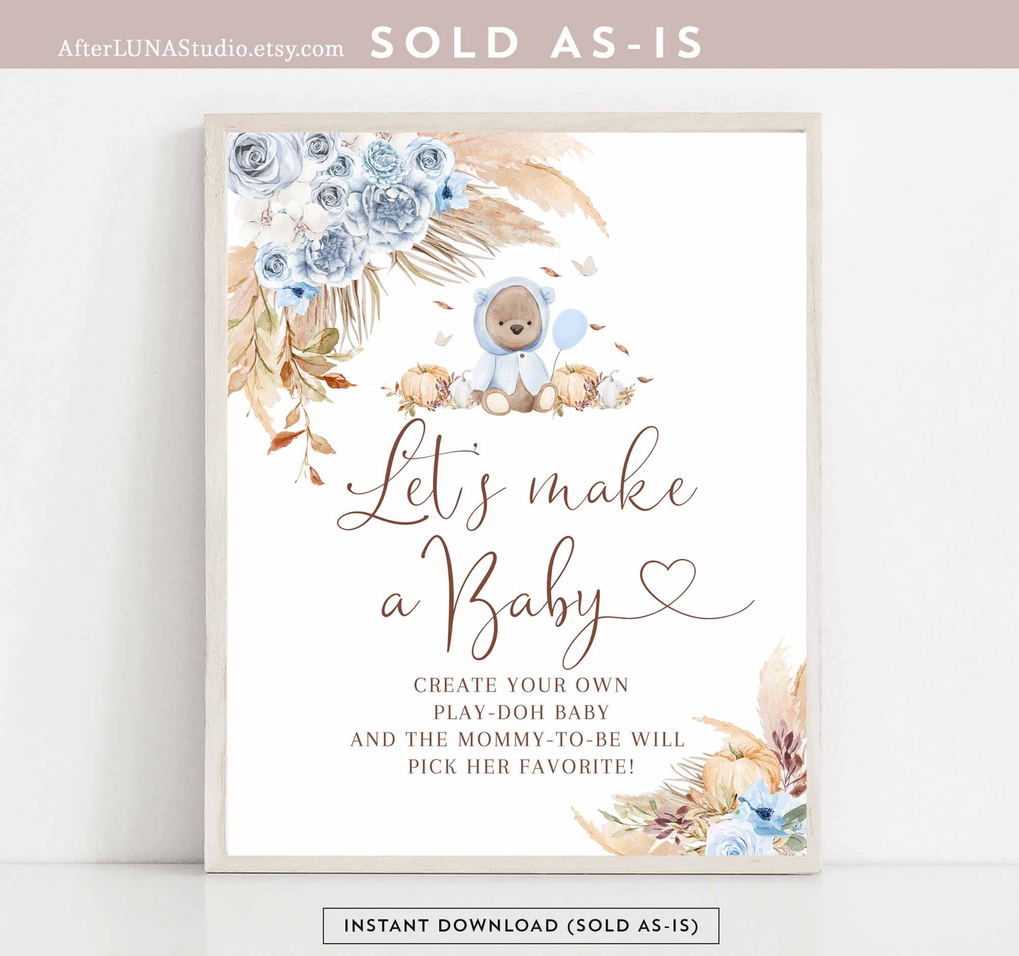 Blue Pampas Grass Fall Pumpkin Boy Teddy Bear Let S Make A Etsy
